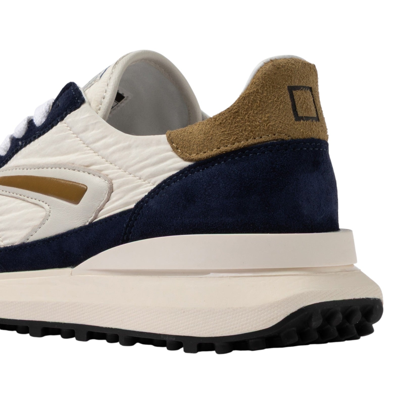 Kwadratowe logo jest wytłoczone na zapiętku z zamszu w kolorze wojskowej zieleni.