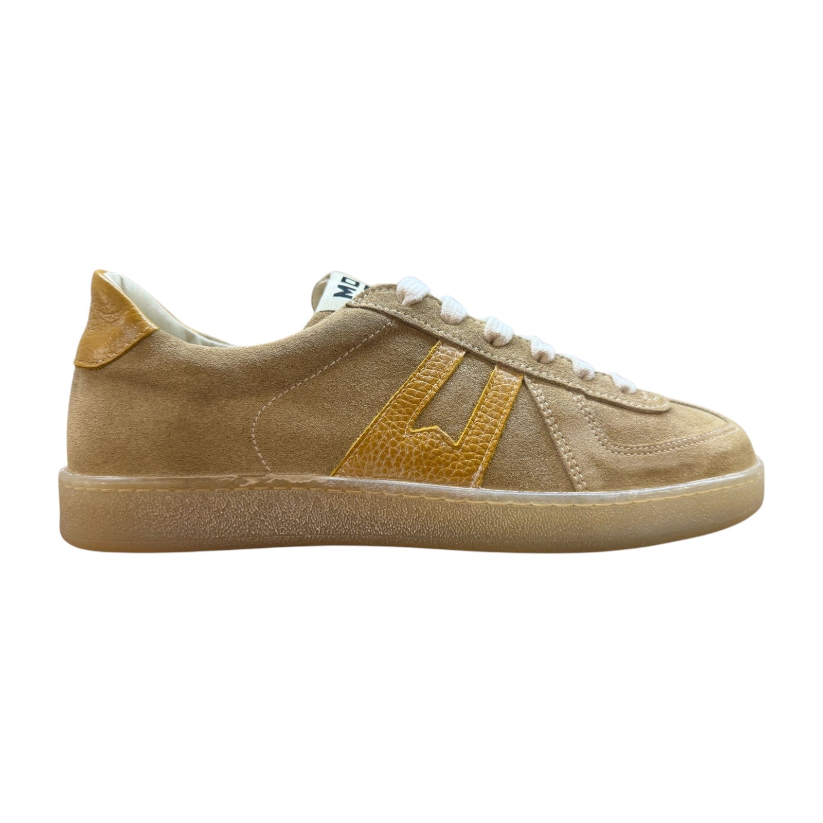Sneakers z zamszowej skóry naturalnej w kolorze beżowo-ochrowym